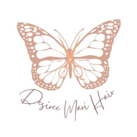 About my Logo of Desiree Mari Hair The butterfly has 3 meanings, My daughter, her middle name has butterfly meaning in it. Butterfly symbolizes transformation. Mari is a part of Mariposa which means butterfly in Spanish. The rose gold shears symbolize me, my craft, and a pair of my favorite shears that are Rose Gold.